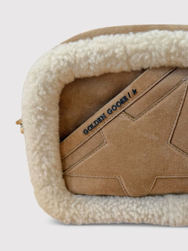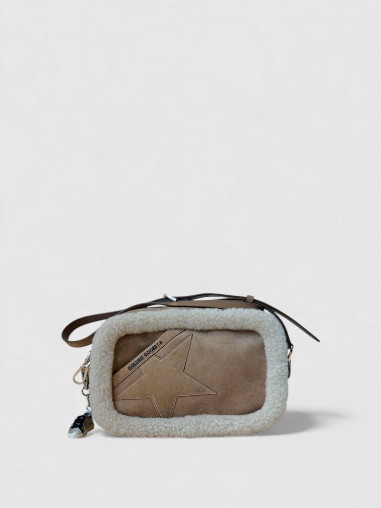 Golden Goose Shearling Trim Suede Crossbody