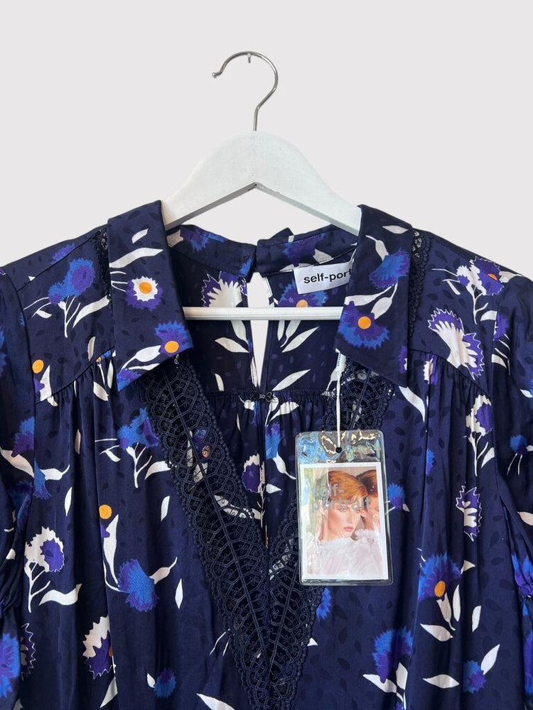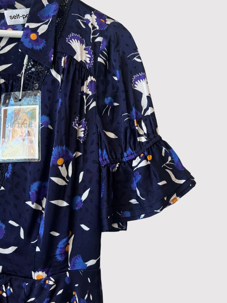 Self-Portrait Navy Botanical Printed Twist Dress NWT