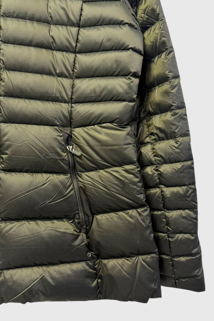 100% nylon. 85% grey goose down, 15% goose feathers (fill) Retail: $248