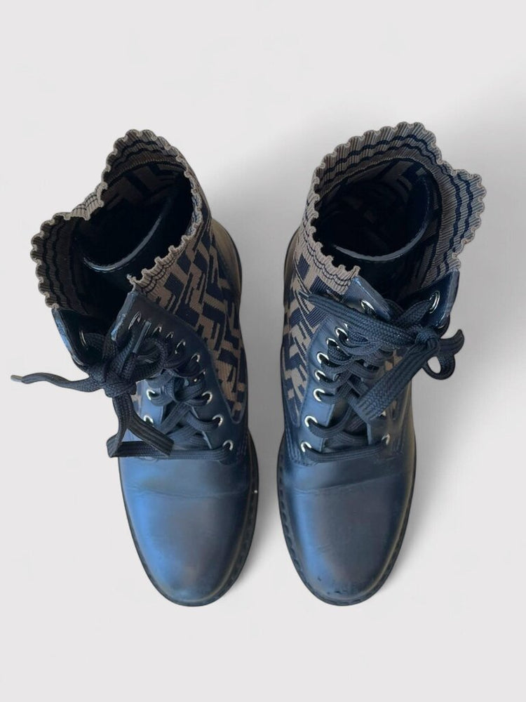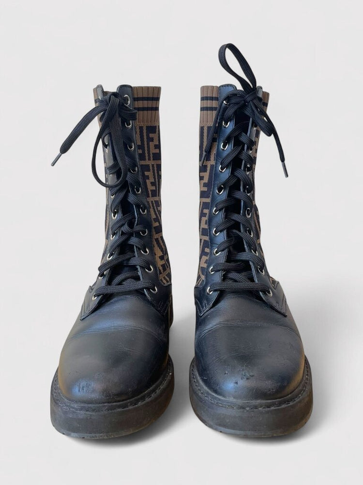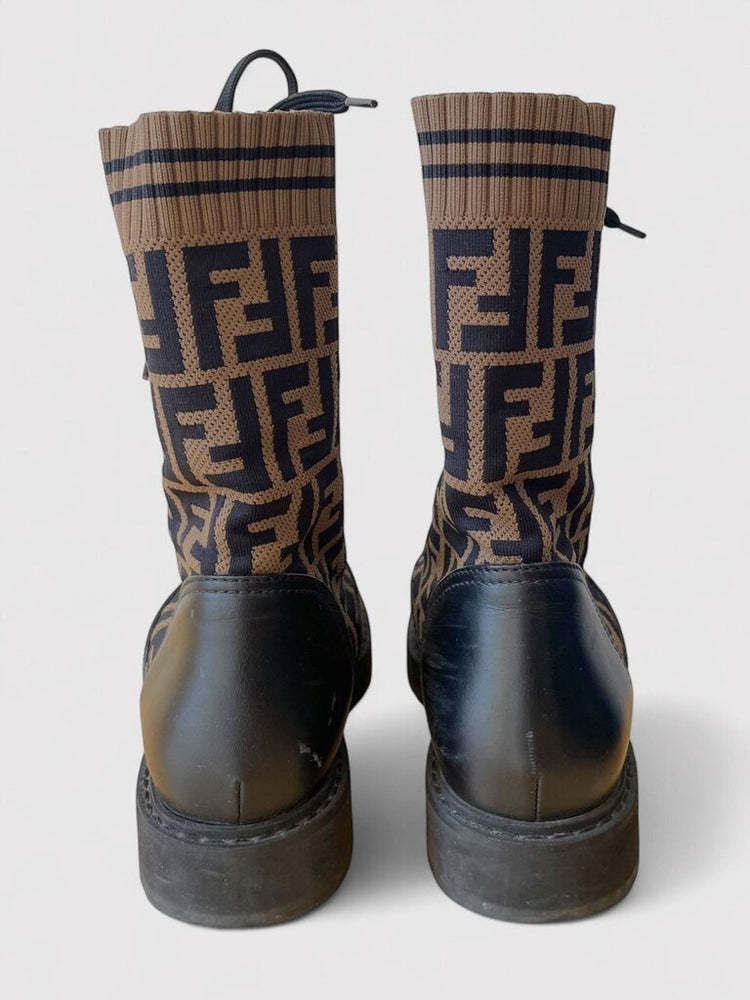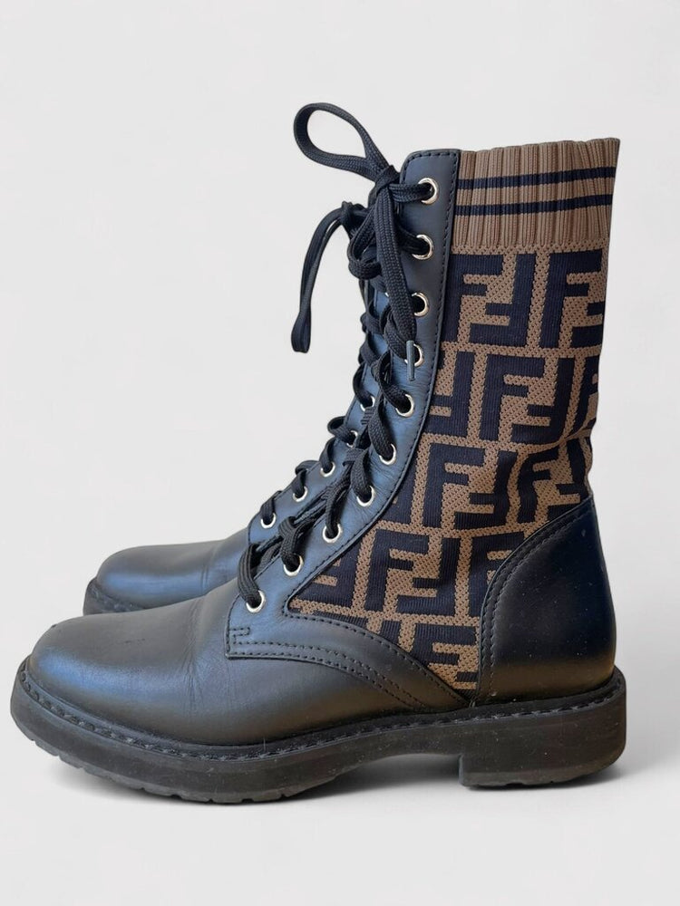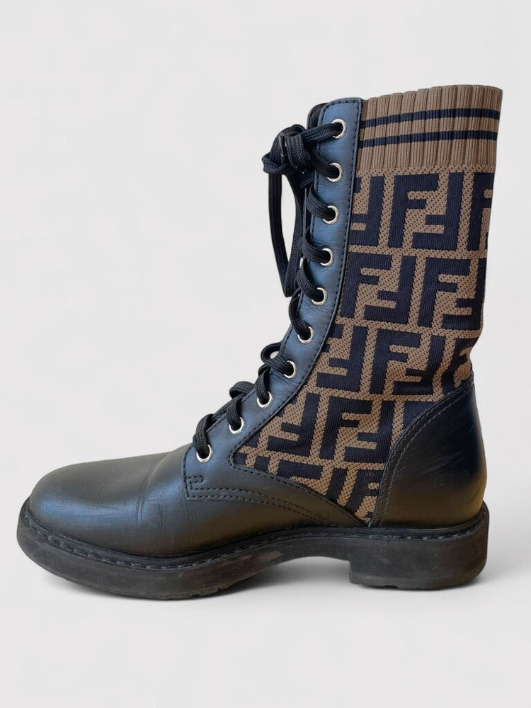 Fendi Rockoko Zucca Knit Combat Boot